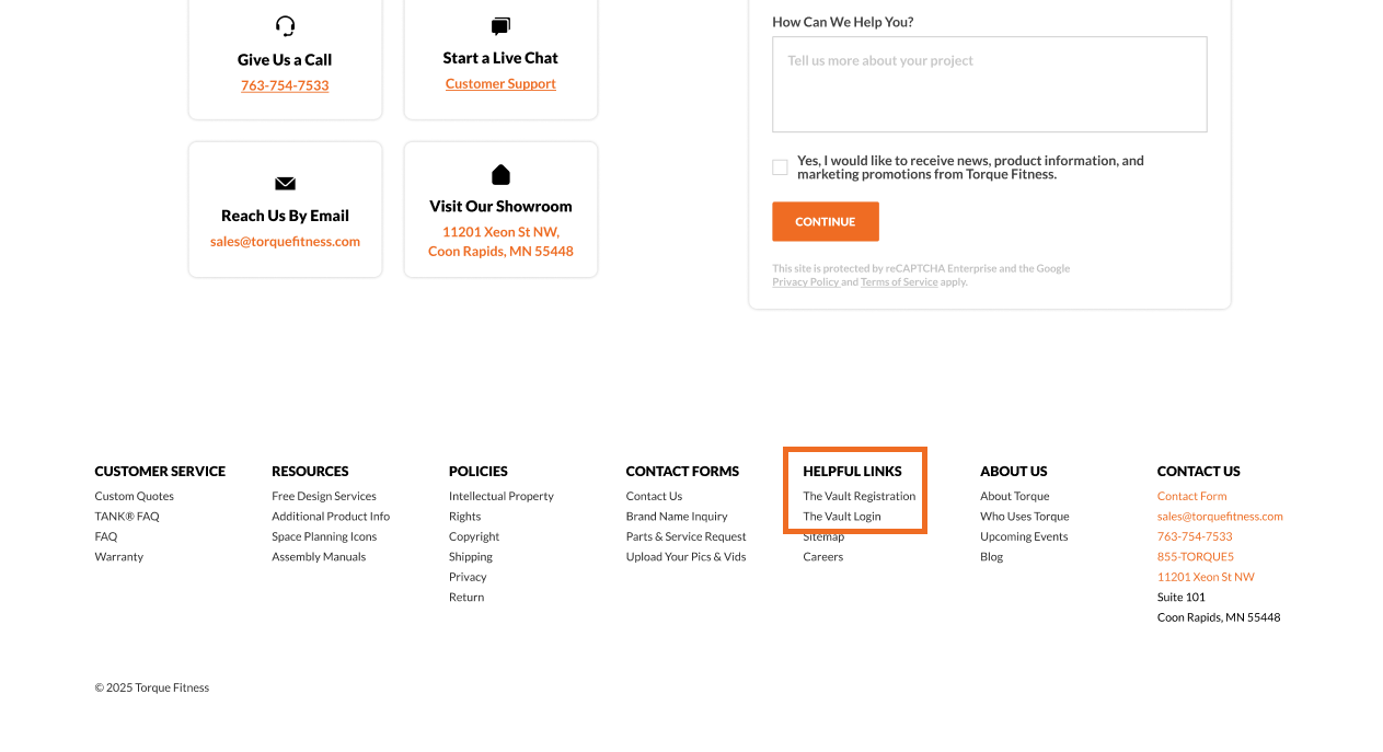 You can access The Vault’s log-in screen by location the "Helpful Links" section in our website’s footer and clicking on theThe Vault Login link.